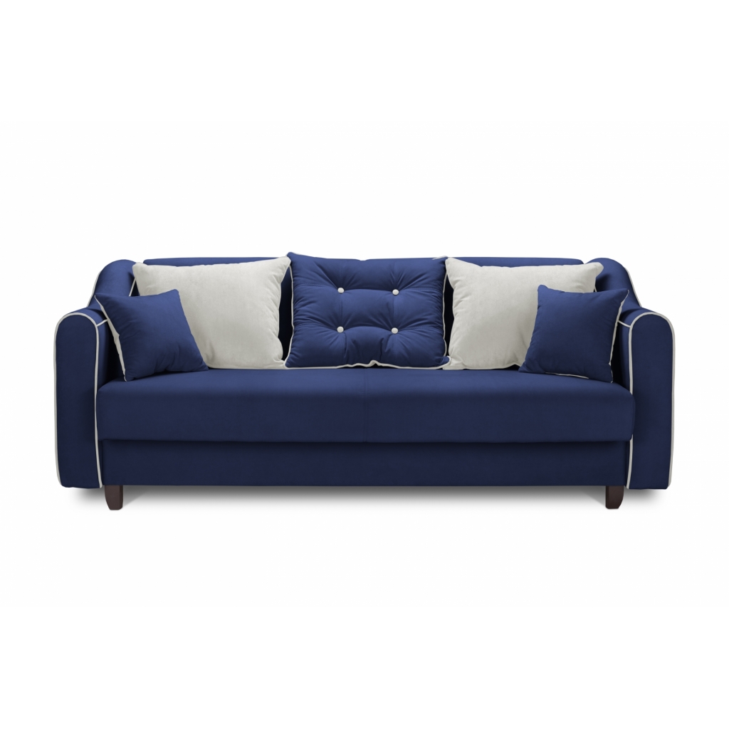 Диван прямой Муссон 2 отличная мебель для повседневного использования. Главной отличительной особенностью являются высокие подлокотники. Они плавно переходят из обычных подлокотников в спинку кровати. Таким образом, получается цельный внешний вид мебели. Подлокотники вместе с сиденьями обиты мягким и упругим материалом. Это позволяет комфортно чувствовать себя продолжительное время. Диван легко трансформируется в кровать. Такое стало возможно благодаря конструкции типа «книжка». Она позволяет быстро разложить обычный диван в большую кровать.
