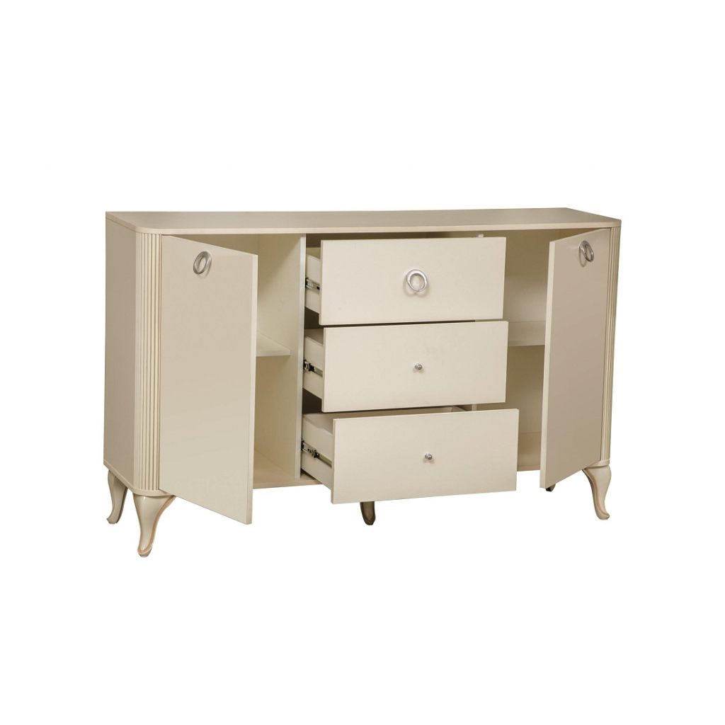 Комод 43.10 Стефани (бежевый / белый / профиль: Kroning слоновая кость патина) от российской фабрики Олмеко отлично подойдет для многих квартир. Многолетний опыт в производстве позволил создать стильную, комфортную и доступную мебель с долгим сроком службы. Закажите у нас и получите быструю доставку в любую точку города. При покупке предоставляется гарантия производителя.