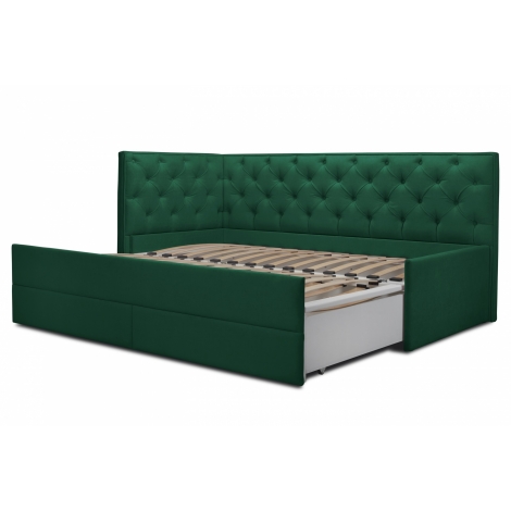 Порше с дополнительным спальным местом в современном исполнении представляет собой симбиоз всех достоинств кроватей. Это элегантная модель с декоративным изголовьем, украсит ваш дом и подчеркнет достоинства вашего интерьера. Имеется дополнительное выкатное ортопедическое основание, и ящик для дополнительного матраса. Хорошее решение для вашего дома.