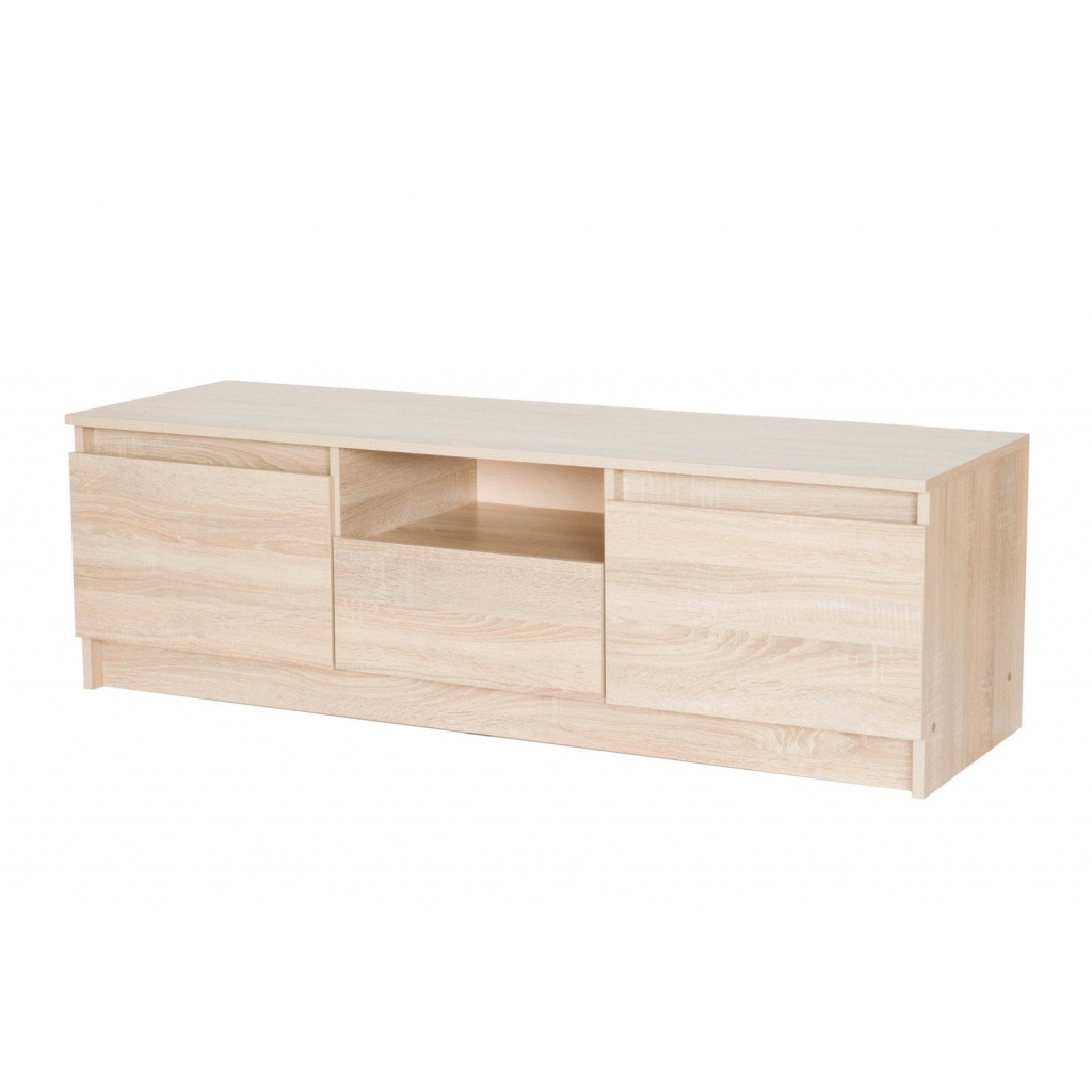 Тумба ТВ Ларго предназначена для удобного размещения ТВ и мультимедиатехники. На столешнице хватит места для панели с самой большой диагональю, предметов декора. Центральную часть тумбы занимает выдвижной ящик, над ним имеется открытая ниша. По обе стороны от ящика расположены отделения с глухими дверцами: там удобно спрятать все провода, хранить пульты дистанционного управления, игровые приставки, видеоаксессуары. Дверцы без лицевой фурнитуры открываются путем нажатия.