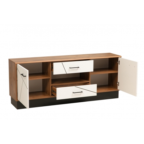 Тумба под ТВ 54.04 Гамма (ш.1600) от российской фабрики Олмеко отлично подойдет для многих квартир. Многолетний опыт в производстве позволил создать стильную, комфортную и доступную мебель с долгим сроком службы.